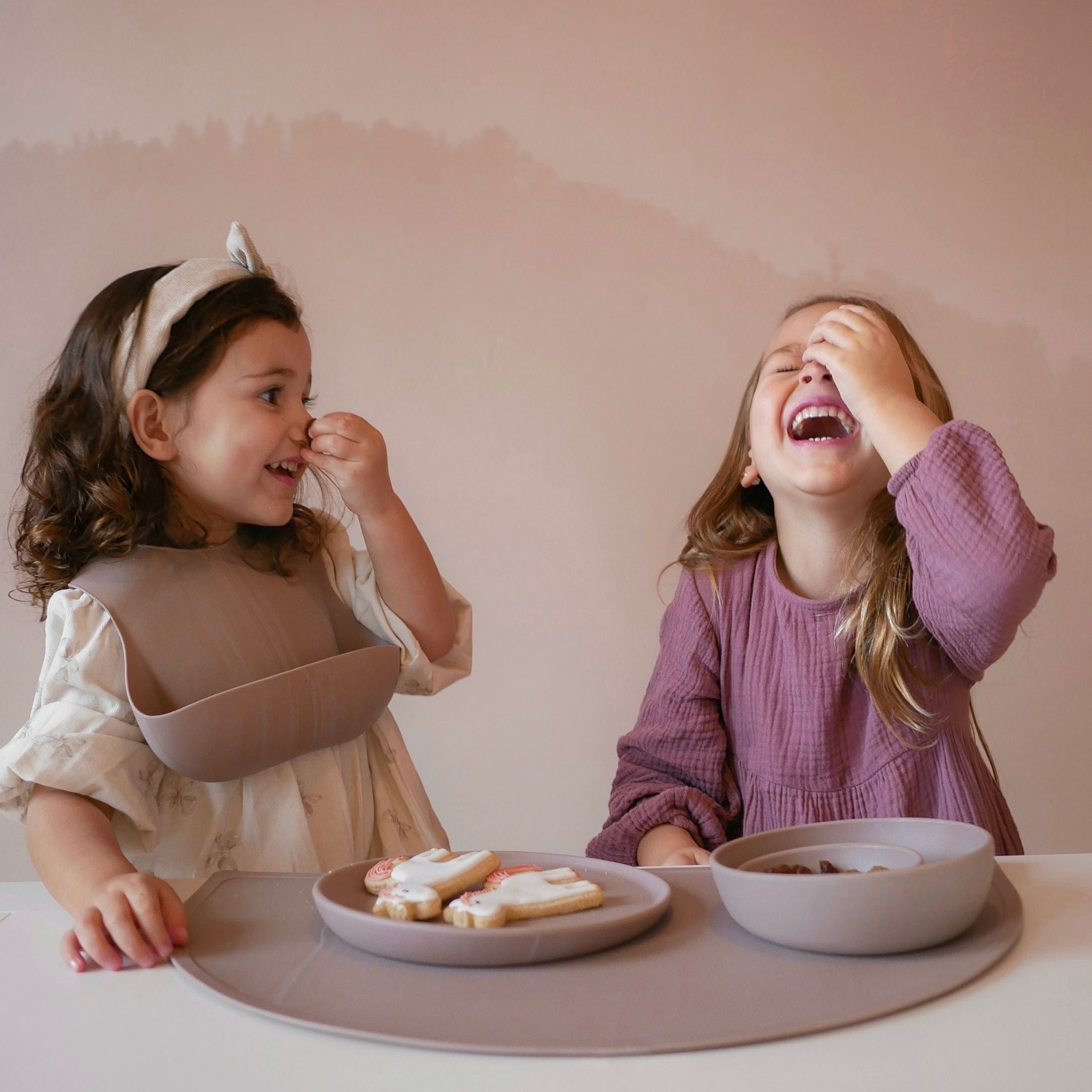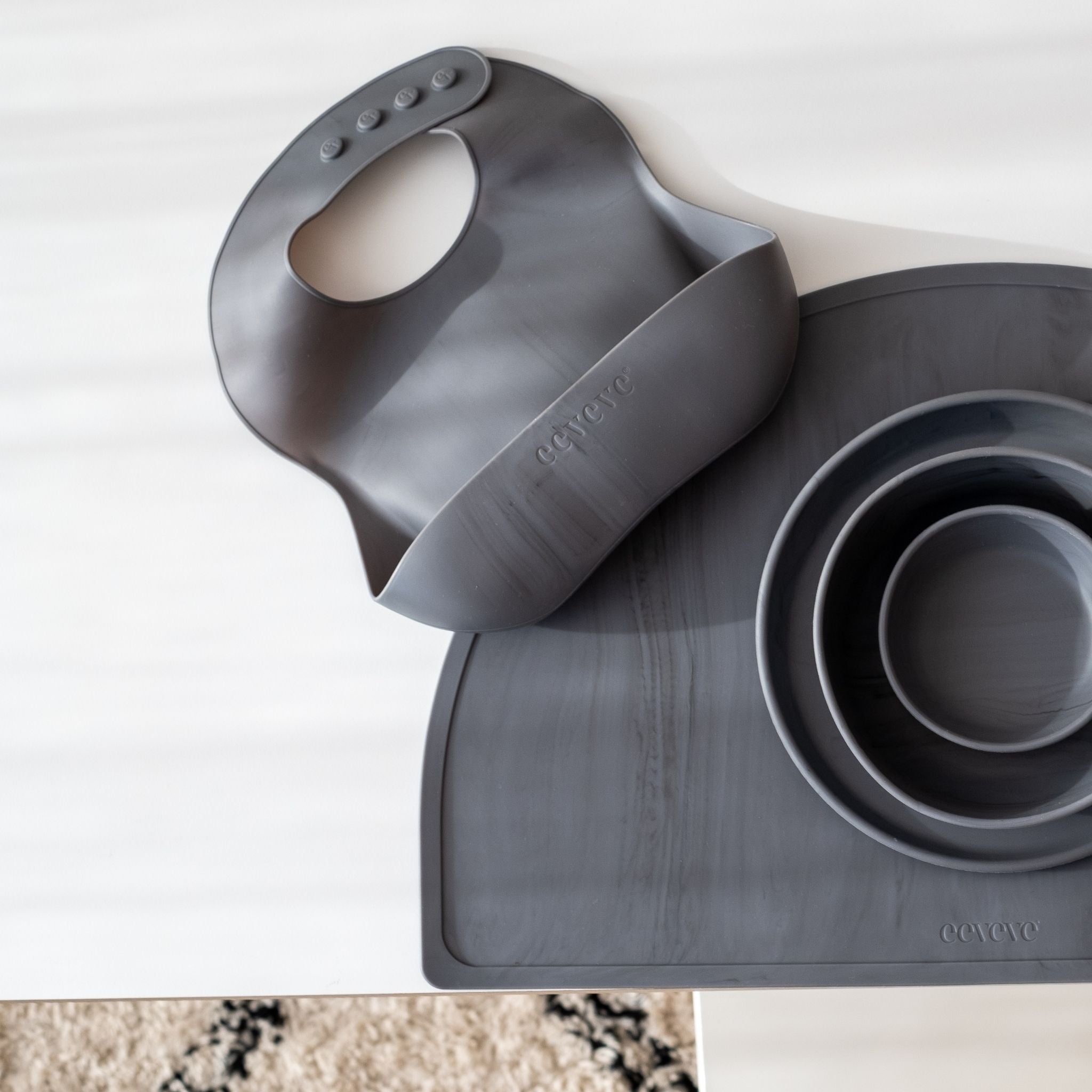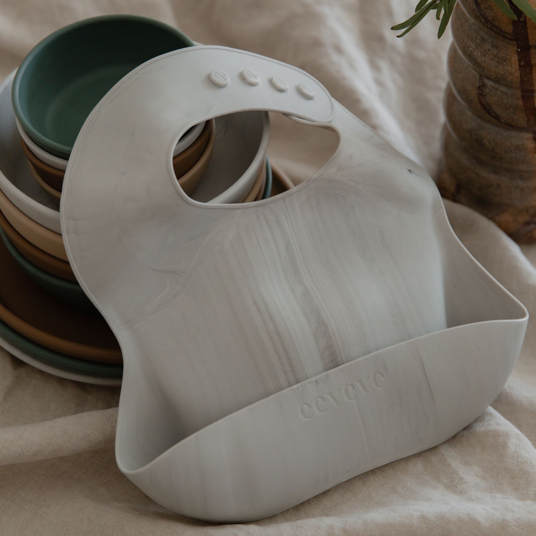De siliconen slabbetjes van Eeveve zijn gemaakt van hoogwaardige, zachte materialen en hebben een innovatieve, versterkte sluiting die zelfs de meest vastberaden peuterhanden kan weerstaan. Deze waterdichte slabbetjes zijn speciaal ontworpen met een praktisch ingebouwd zakje om eten in op te vangen. Ze maken gezinsmaaltijden leuk en minder rommelig!