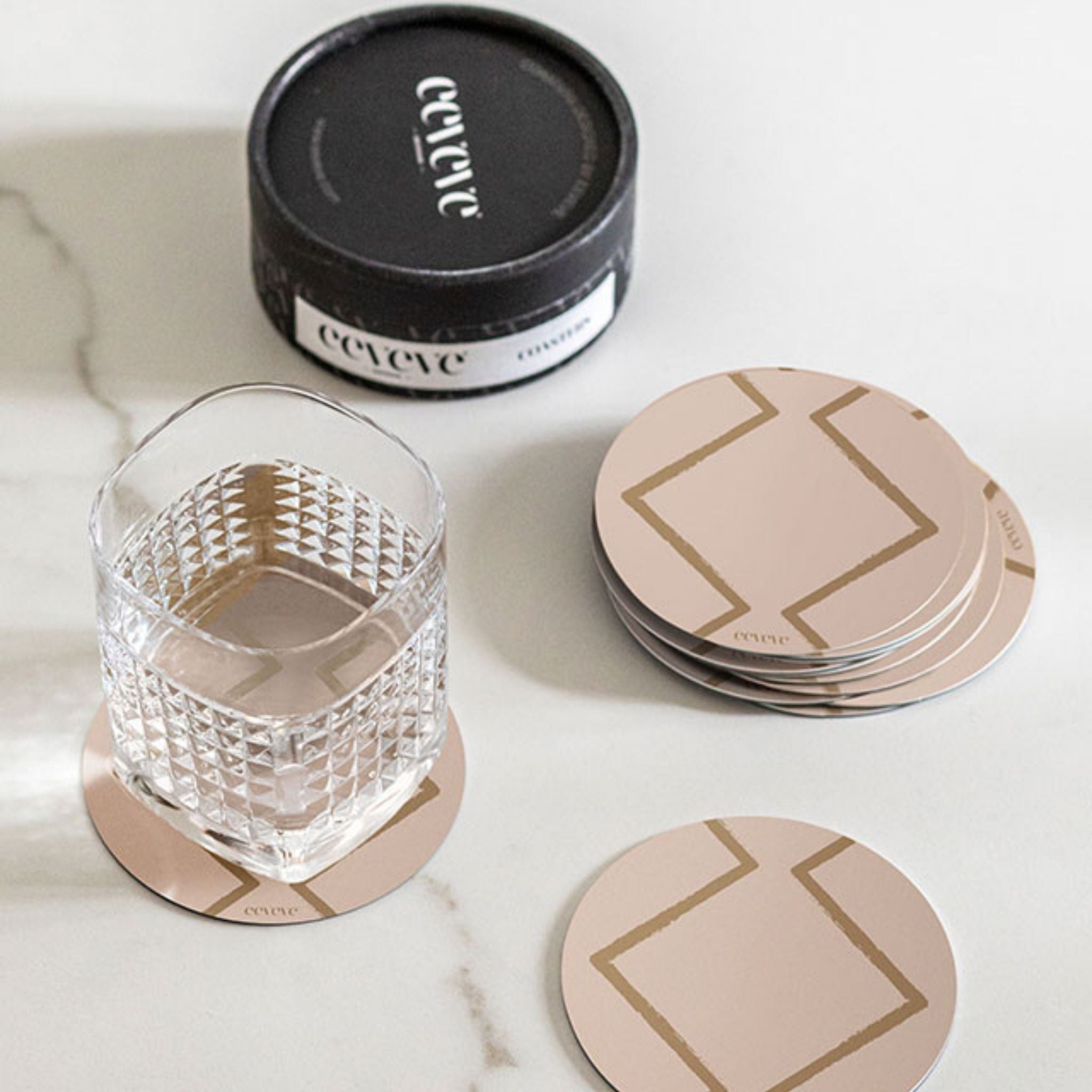De afwasbare onderzetters van Eeveve zijn naast de luxe uitstraling super praktisch! Je glas blijft niet plakken aan de onderzetter en beschikt over een antislip laag. Je kunt gemakkelijk de kringen van het drinken verwijderen door de onderzetters in de afwasmachine te plaatsen.