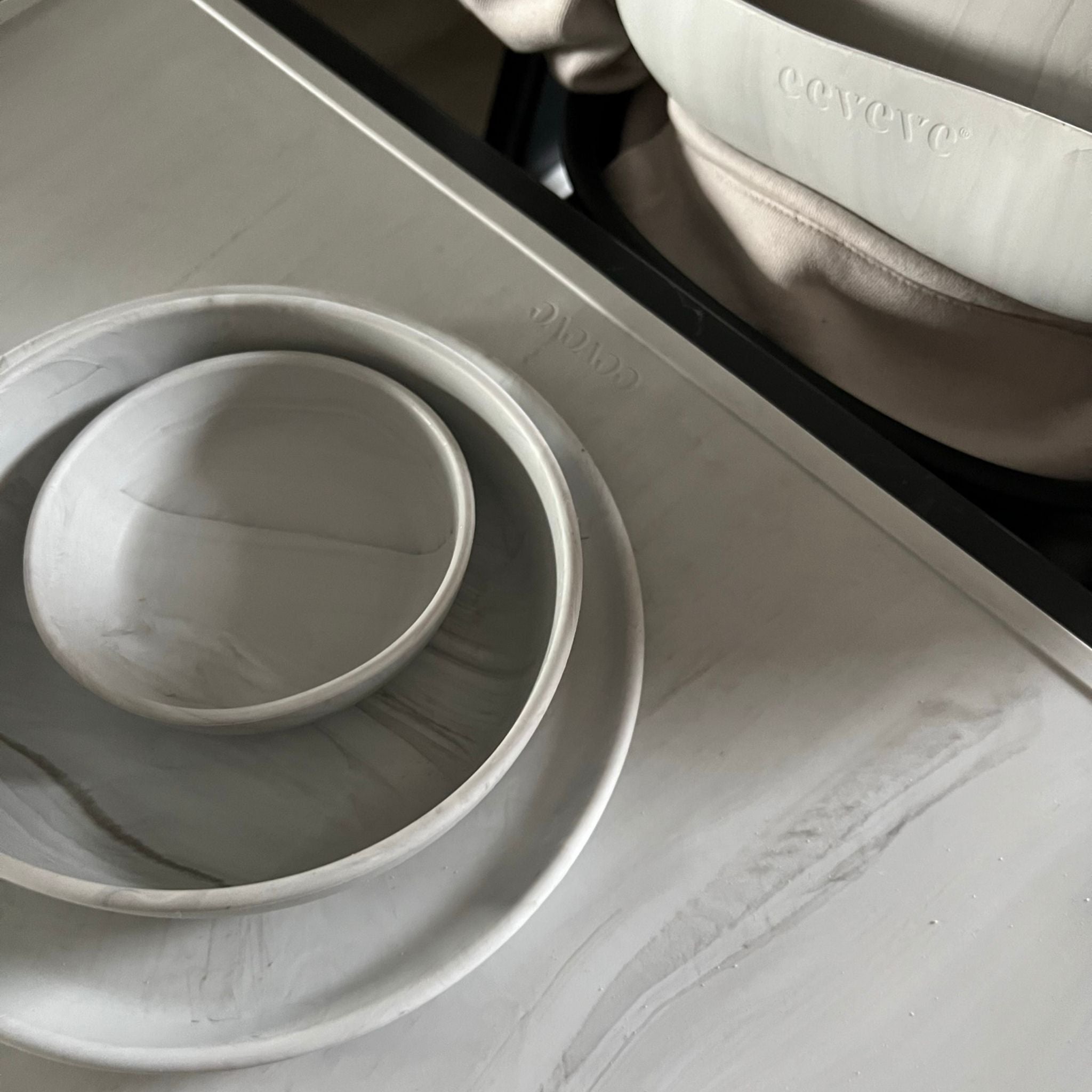 Dat betekend dat elk item een ander patroon kan bevatten. Door deze speciale techniek creëren wij zo een keramische look aan het siliconen.