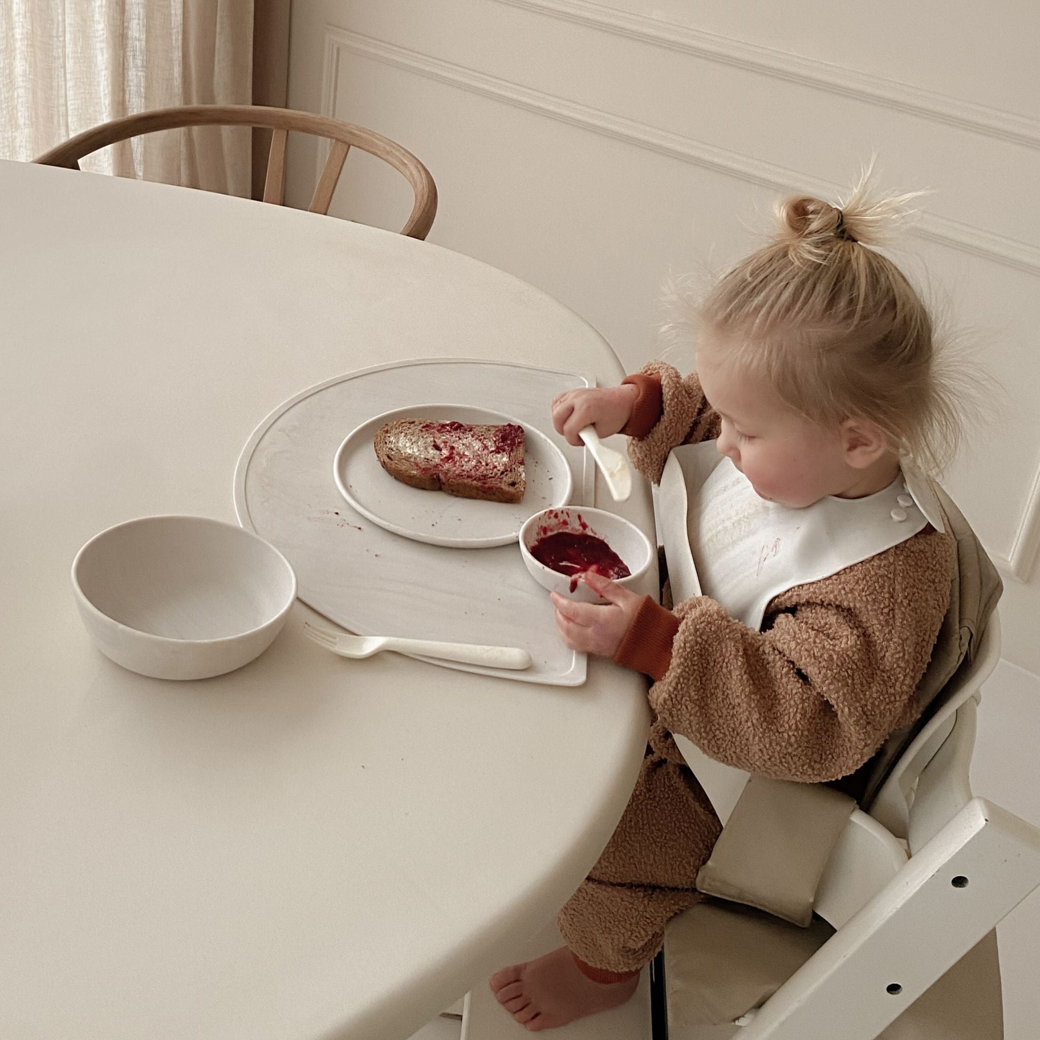 Kindvriendelijk maar met een volwassen uitstraling om een uniforme tafel te kunnen dekken. Duurzaam, want je kind “groeit” niet uit dit servies vanwege het tijdloze design en hoge kwaliteit.