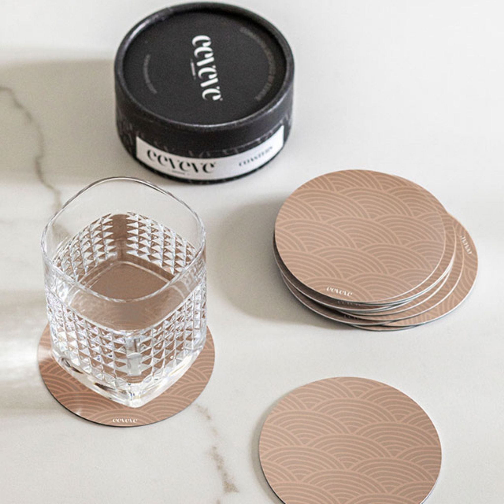 De afwasbare onderzetters van Eeveve zijn naast de luxe uitstraling super praktisch! Je glas blijft niet plakken aan de onderzetter en beschikt over een antislip laag. Je kunt gemakkelijk de kringen van het drinken verwijderen door de onderzetters in de afwasmachine te plaatsen.