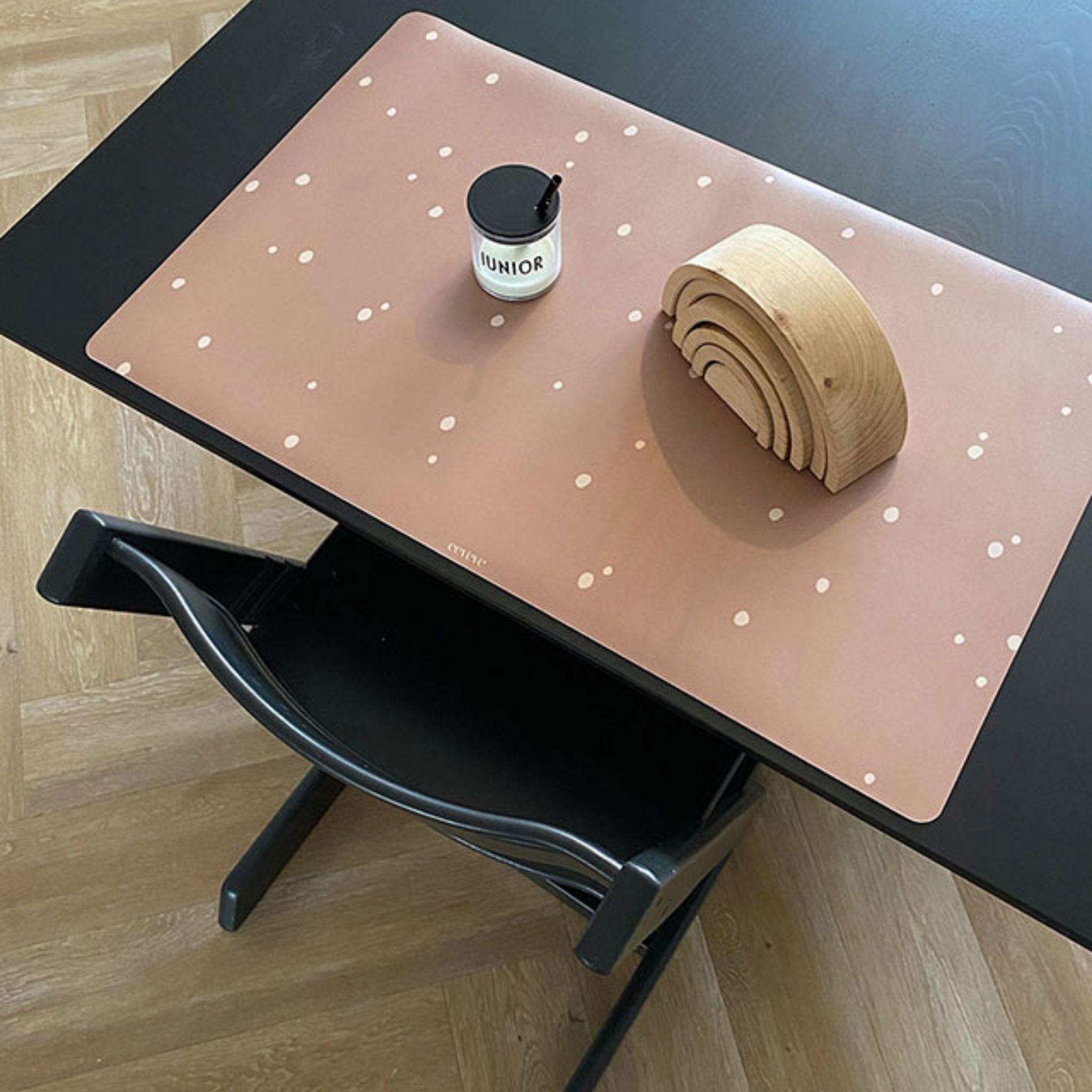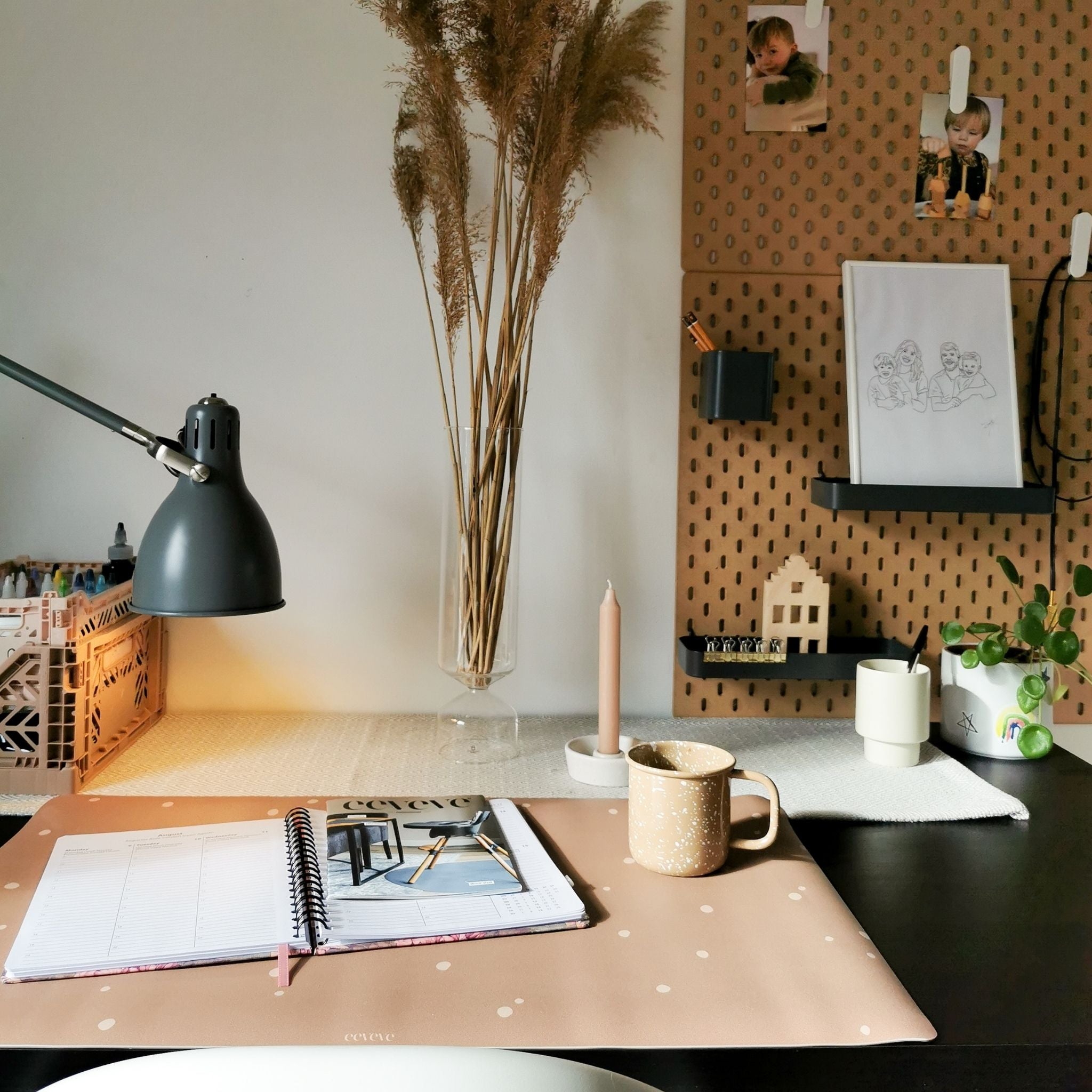 De Eeveve bureau onderlegger is super veelzijdig! Van knutselmat, XXL placemat tot bureaumat. Heel gemakkelijk schoon te krijgen met een vochtige doek en beschikbaar in vele prachtige designs. Je hebt geen losse muismat meer nodig! Antislip, hittebestendig en het materiaal zorgt voor een perfect schrijfoppervlak.